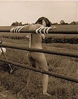 It is an hour later. Cathy stands tied to the fence of the loser's broodmare coral. She can barely move because they have lashed her arms out along the top rail. Her head hangs down in exhausted defeat. Her boots, tail, harness, bells, dildo and hoodwink are all gone, leaving only the painted over goggles to keep her captor's secrets. She senses other women behind her but when she tries to speak to them she gets only gag garbled grunts in return.