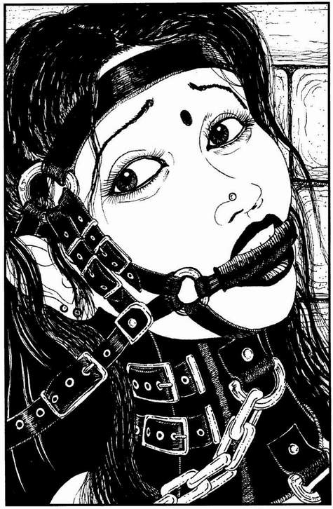 Early next morning, her Owner returned and fitted a many-strapped leather head harness on her, again very tightly. This was followed by a control bit that snapped into the hole in her immobilized teeth and attached to cheek rings in her head harness, and then by long leather reins same cheek rings.