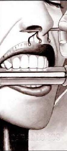bit went behind her teeth inside the mouth and had U shaped section so her lips