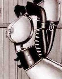 length. Her arms were bent at the elbows and strapped tight to her upper arms. A