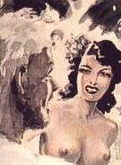 I tried to draw slowly and deliberately on my cigarette but only succeeded in chewing off the end. With a mouthful of tobacco, I mumbled something like "marvelous" or "excellent". It really was too. And there was an awkward pause in which neither of us seemed game to look squarely at the other. Then, apparently satisfied that I now had everything I needed for the time being, she straightened up, slowly, like a cat stretching, and once more headed off toward the kitchen, those amazing pencil-thin heels going clickety-click on the polished hardwood floor.